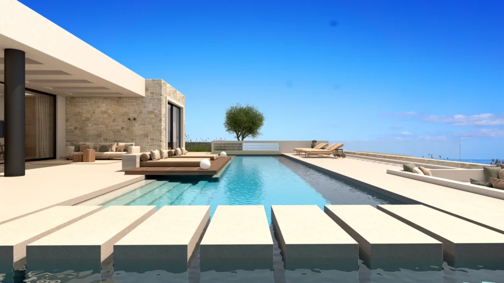 Αρχιτεκτονική σχεδίαση βιλών Ρέθυμνο ΚρήτηςΗ παρούσα μελέτη αφορά την κατασκευή τριών ανεξάρτητων, πλήρως εξοπλισμένων βιλών με ιδιωτικές πισίνες, τοποθετημένων σε επικλινές οικόπεδο στα Σέλια Ρεθύμνου. Κεντρικός άξονας της αρχιτεκτονικής σύνθεσης