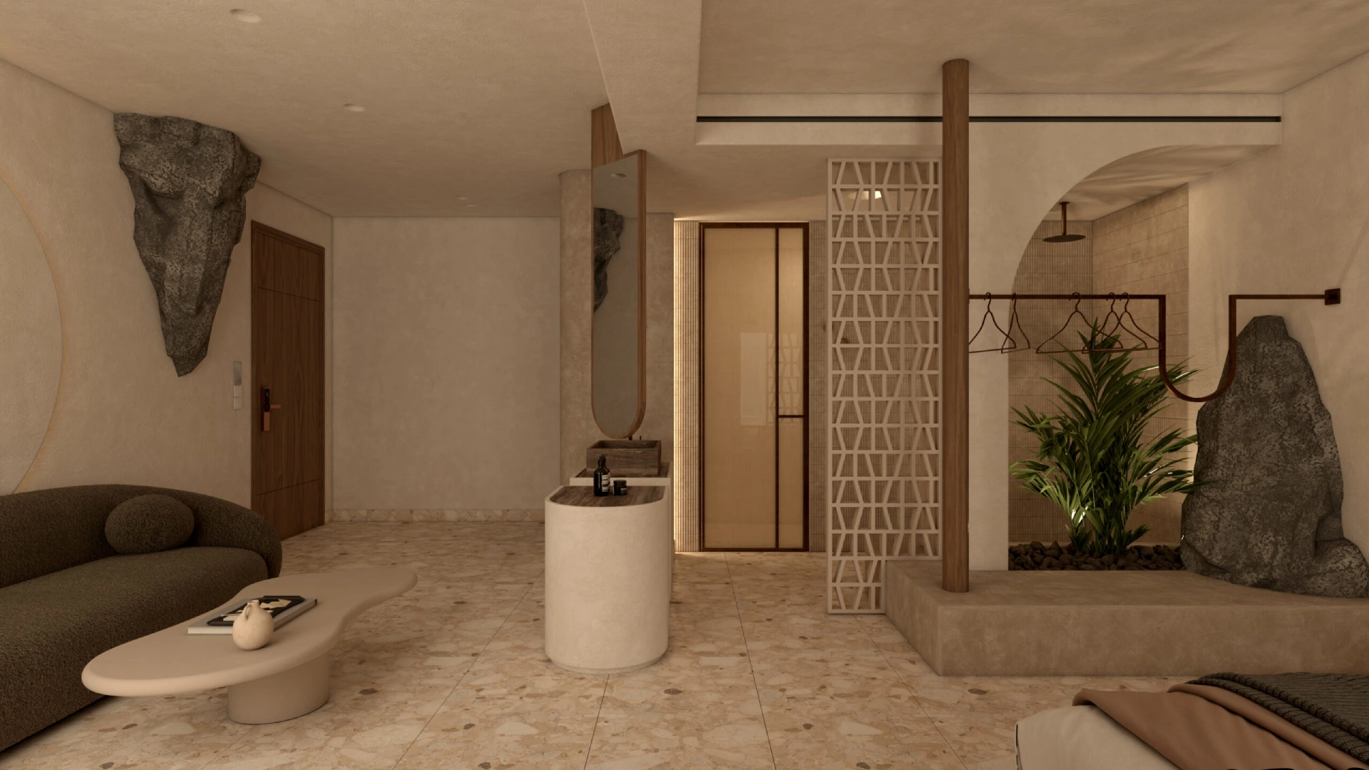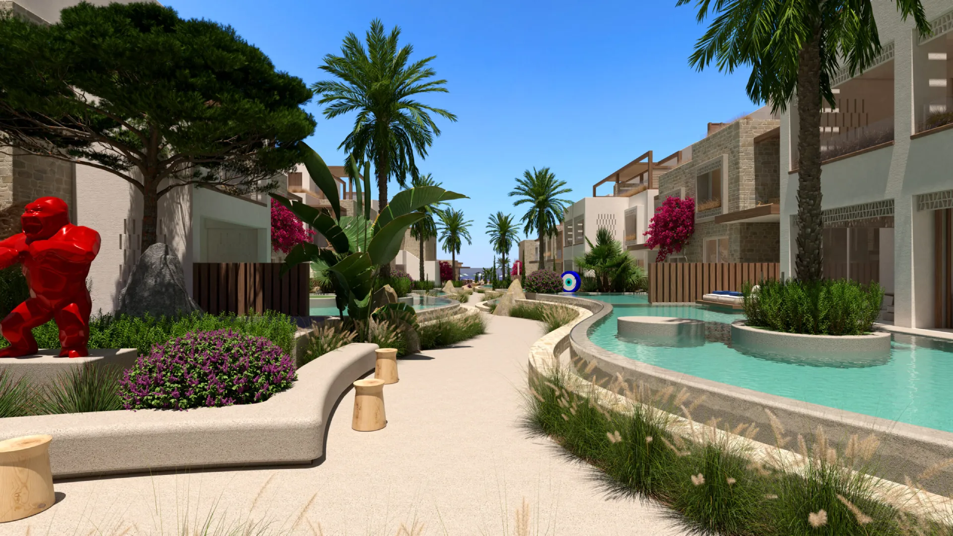Μέσα από δρομάκια που διακλαδώνονται και οδηγούν σε σουίτες όπου ξεπροβάλλουν λίμνες, εντυπωσιακά φυτά και βράχια. Η άψογη σύνδεση του φυσικού τοπίου με την μοντέρνα αρχιτεκτονική και την παραδοσιακή κρητική τεχνοτροπία ορίζουν την φιλοσοφία του, υπερτονίζοντας τις αξίες της ανόθευτης και αυθεντικής φιλοξενίας με στόχο την αναζωογόνηση, την χαλάρωση αλλά και στο dolce forniente, με όλες τις ανέσεις που ταιριάζουν στις καλοκαιρινές διακοπές.