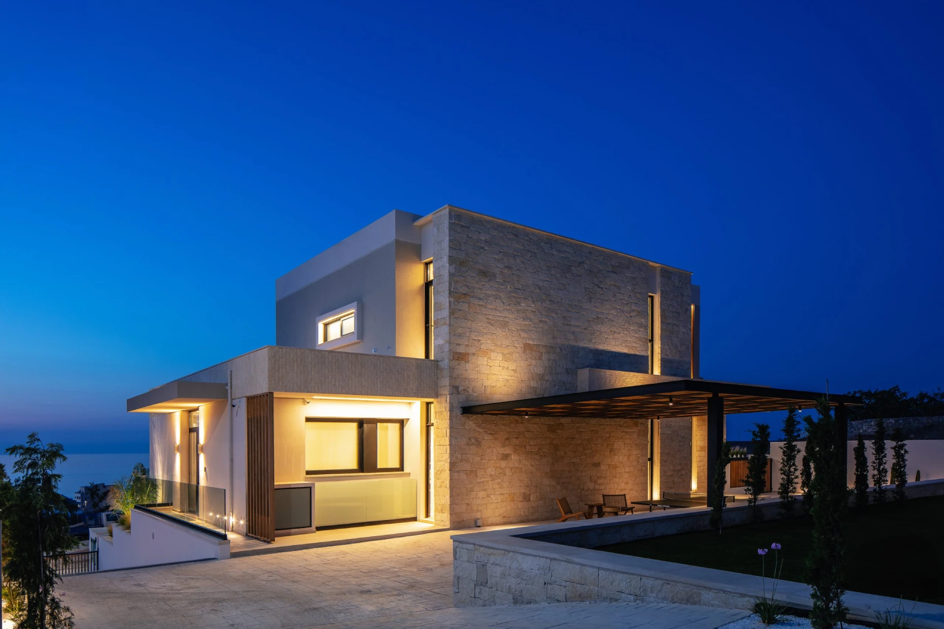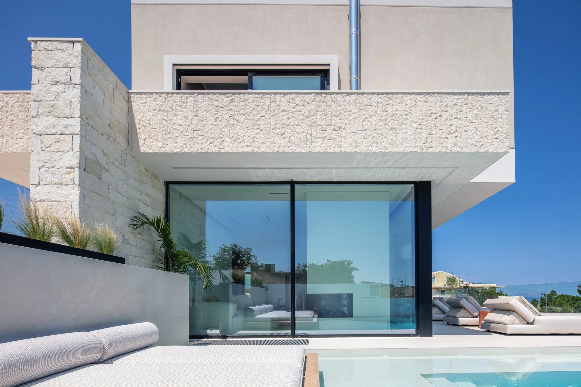 Το αποτέλεσμα είναι μία κατοικία υψηλών προδιαγραφών που ορίζεται από την αβίαστη πολυτέλεια, που συνοδεύεται από ένα γαλήνιο περιβάλλον γεμάτο φύση.