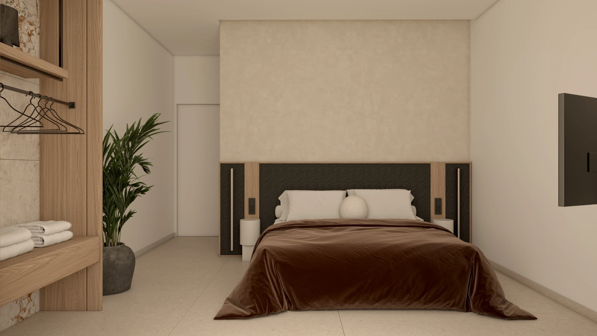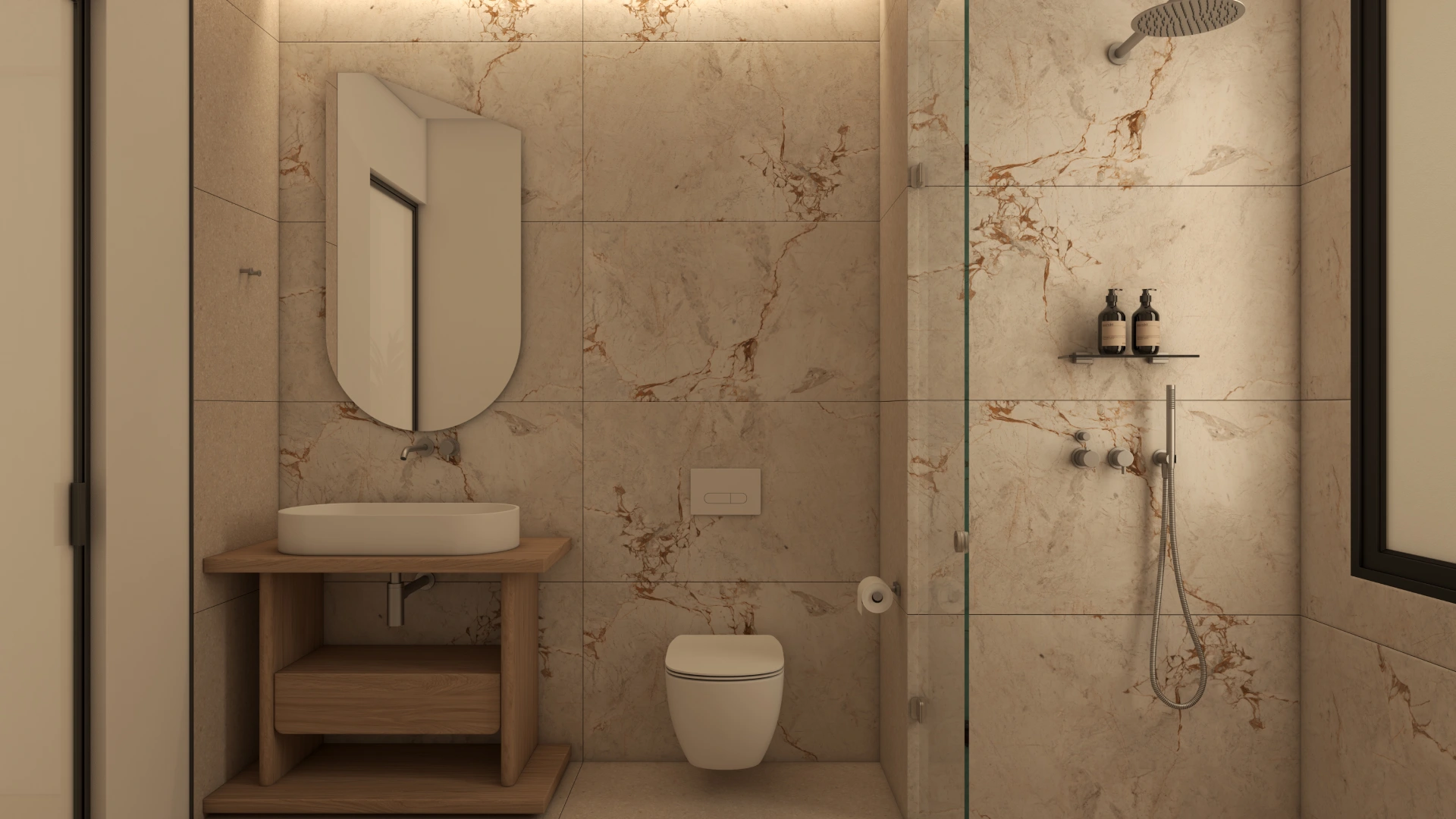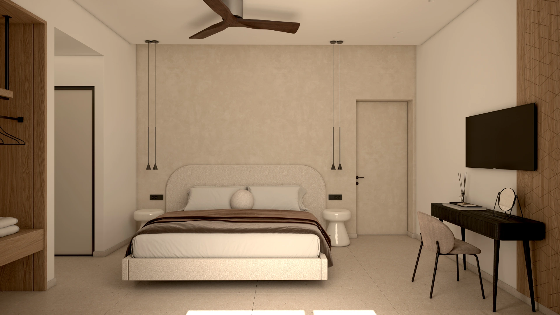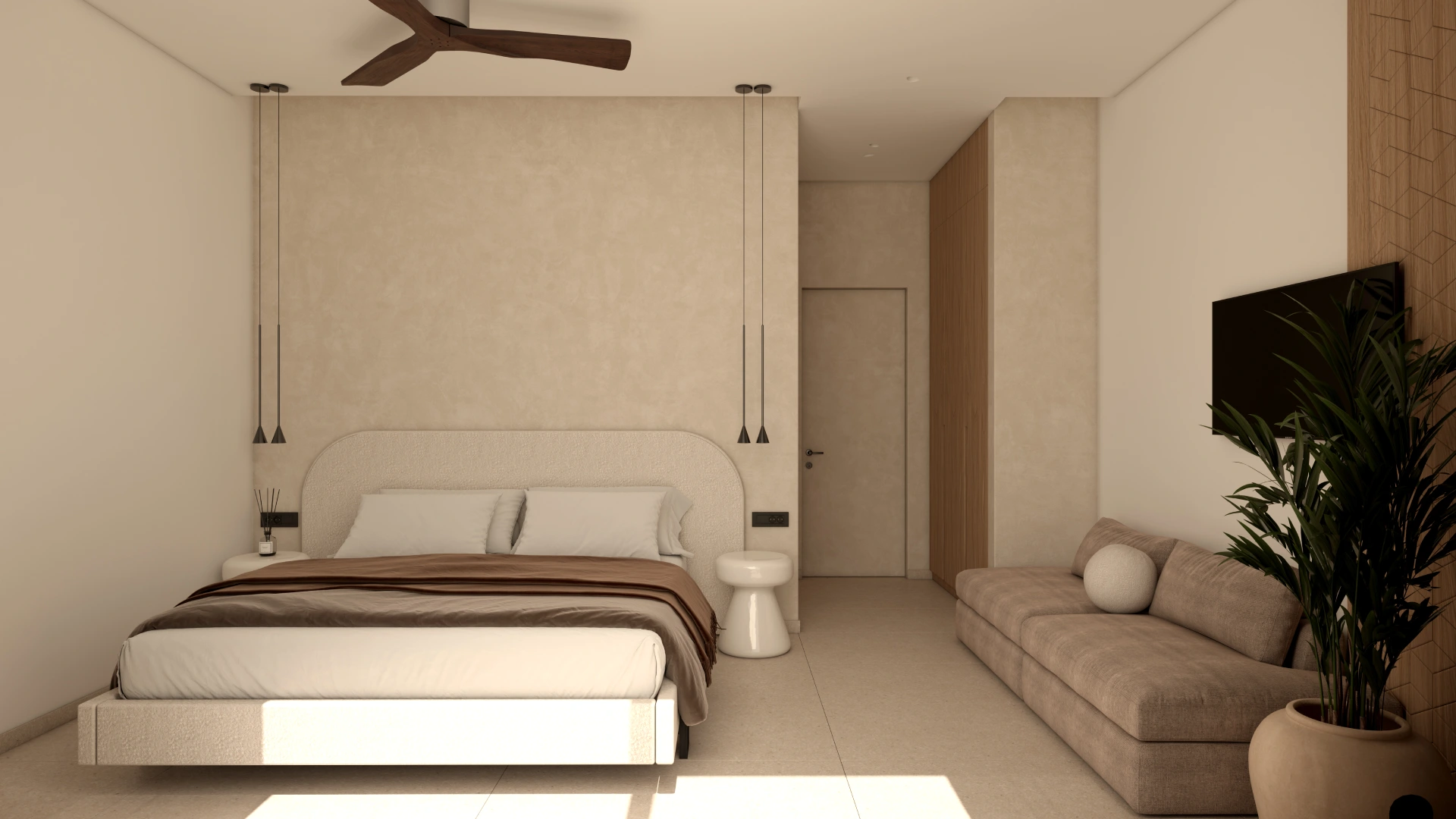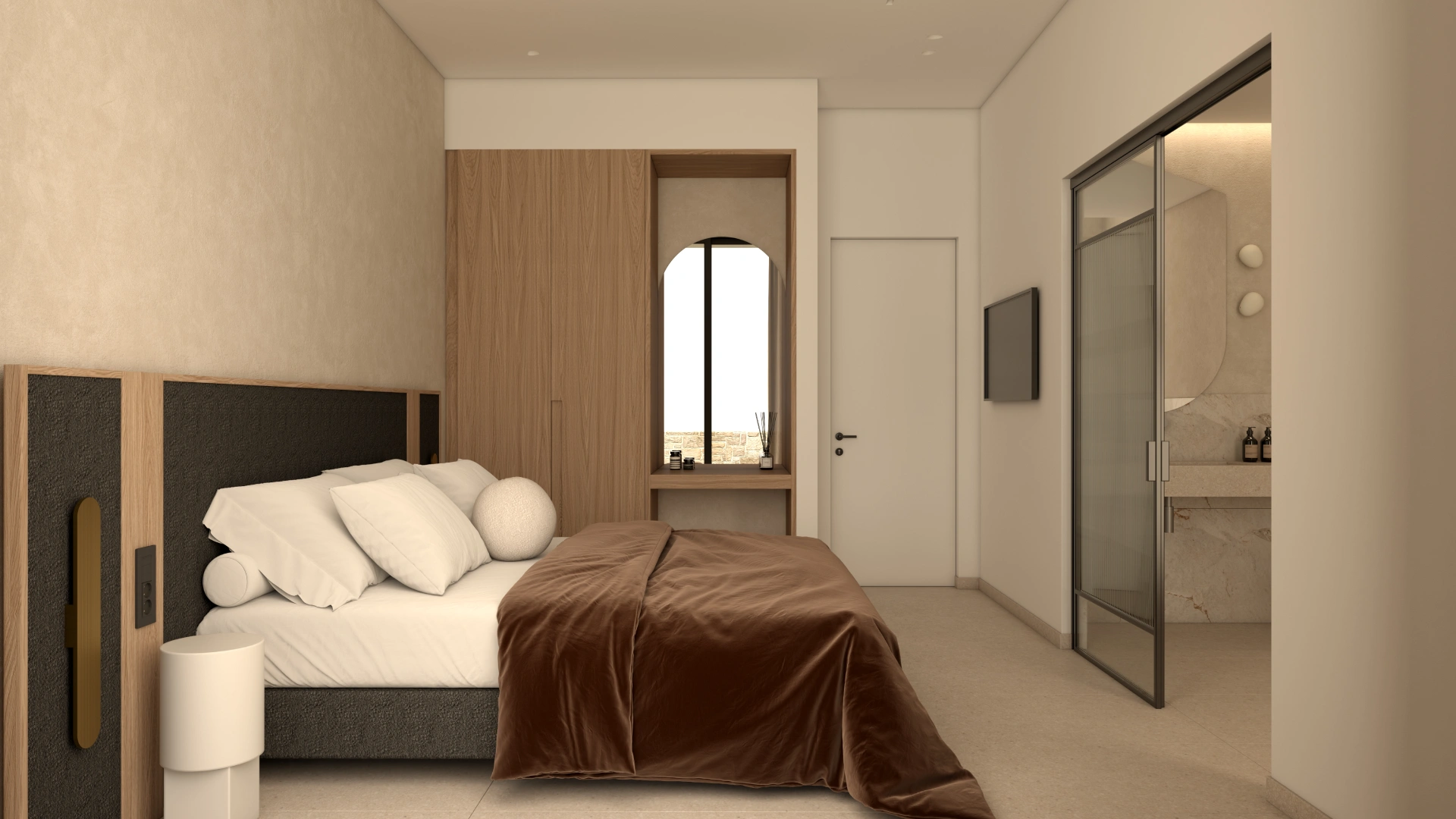 Η χρήση φυσικών πετρωμάτων και οργανικών στοιχείων δημιουργεί μια ενδιαφέρουσα αισθητική, η οποία ολοκληρώνεται με την εσωτερική διακόσμηση. Στο εσωτερικό της βίλας έχουν χρησιμοποιηθεί δύο διαφορετικοι τόνοι ξύλου προσδίδοντας μια ενδιαφέρουσα τάση. Οι επενδύσεις που διακοσμούν τους τοίχους ενισχύουν το παιχνίδι του φωτός και της σκιάς, δημιουργώντας μια μαγευτική ατμόσφαιρα που αναδεικνύει την κομψότητα και την πολυτέλεια της βίλας.