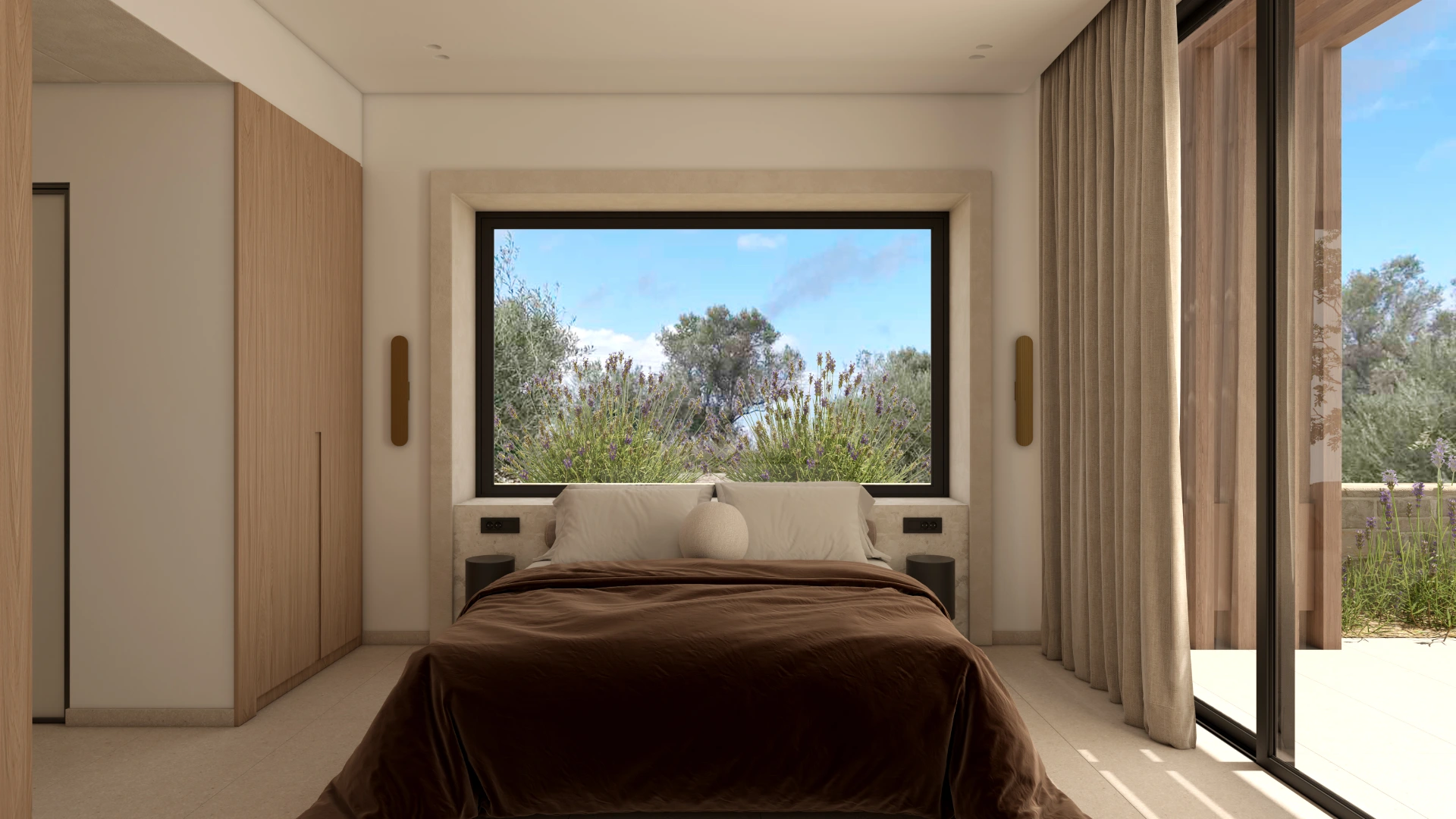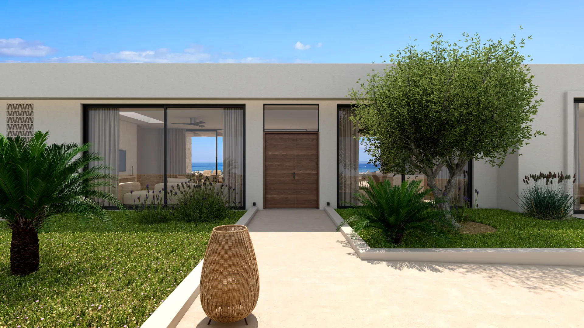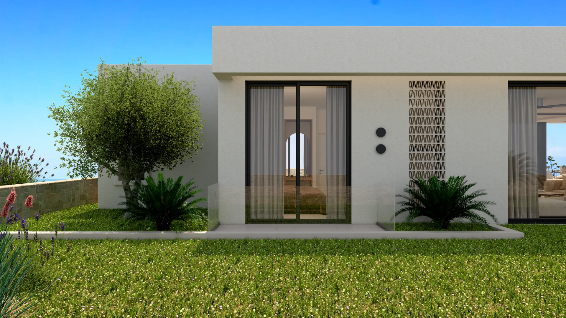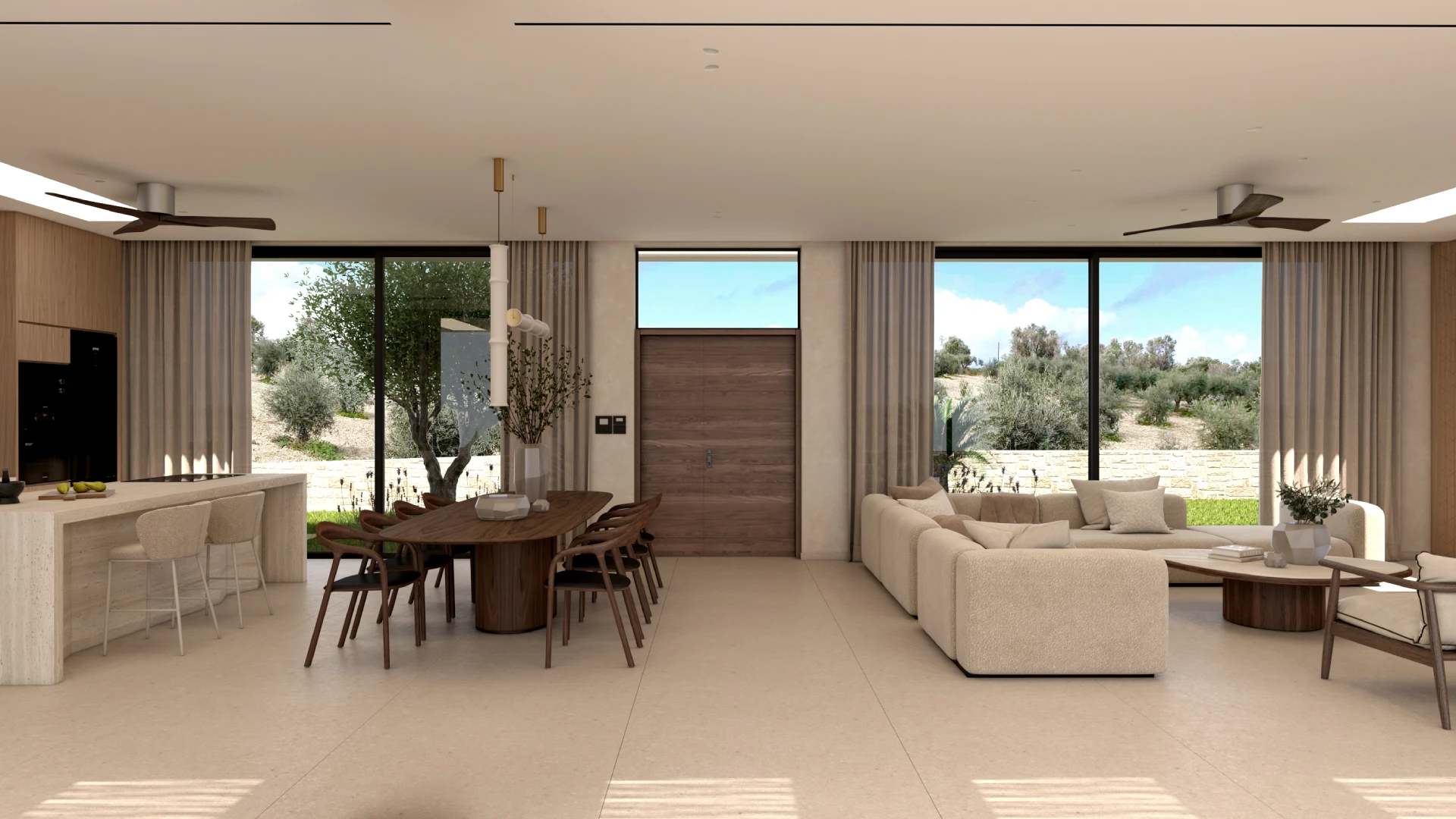 Οι χώροι σχεδιάστηκαν με στόχο την ενοποίηση του εξωτερικού με το εσωτερικό, δημιουργώντας ένα σύνολο που αναδεικνύει τη φύση του περιβάλλοντος. Τα ψηλά ταβάνια κάνουν το σπίτι ευρύχωρο , ενώ οι μεγάλες τζαμαρίες και οι μεγάλοι κοινόχρηστοι χώροι εσωτερικά και εξωτερικά το συμπληρώνουν.