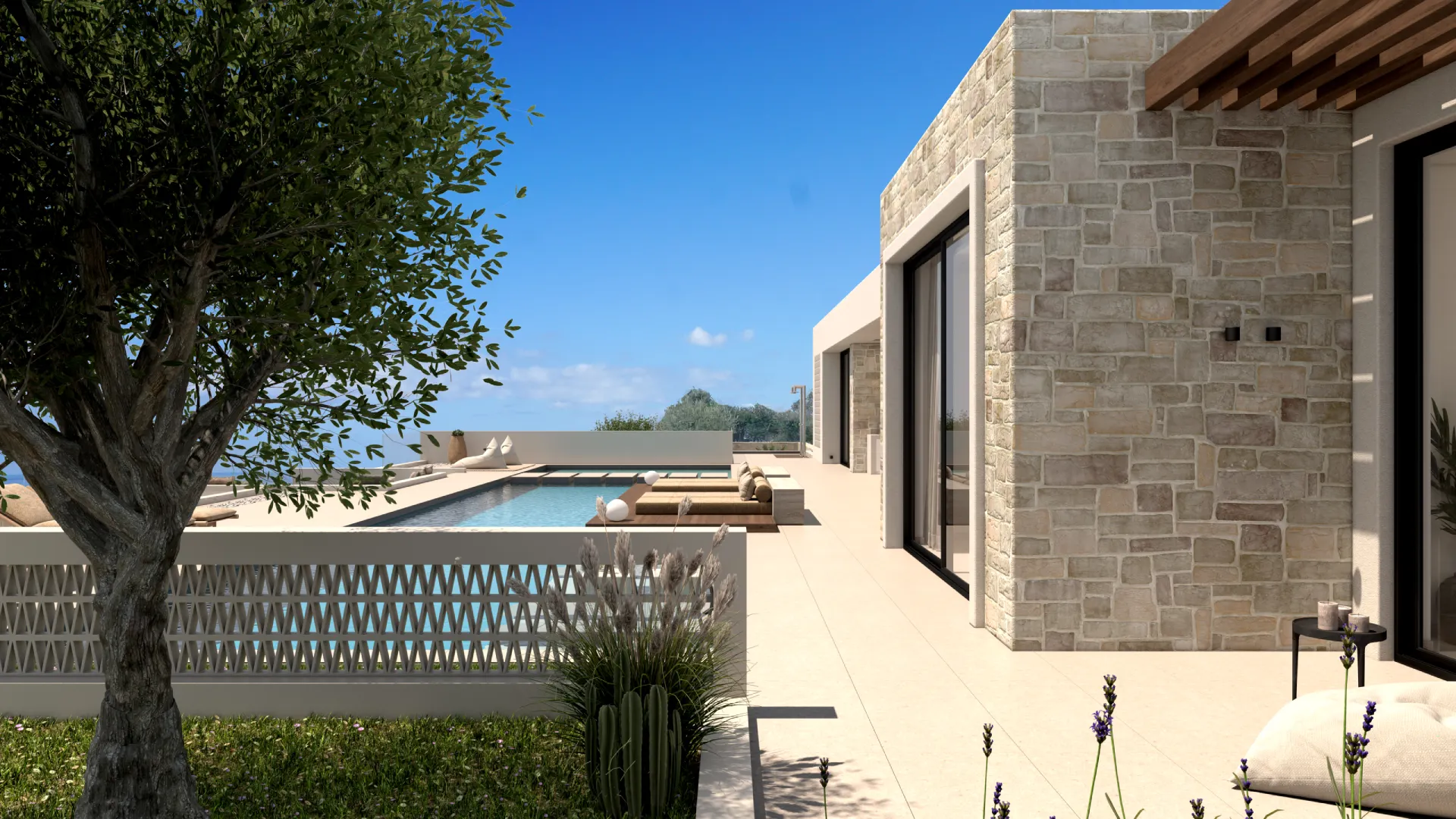 Η εντυπωσιακή αυτή βίλα στην Πηγή Ρεθυμνού, αποτελείται από ένα ενιαίο επίπεδο διαμέρισμα 200τ.μ., μέσα σε ένα οικόπεδο με ελαιόδεντρα. Διαθέτει πέντε ευήλια υπνοδωμάτια, καθένα με δικό του μπάνιο, είτε κλειστό είτε ανοιχτό καθώς και τουαλέτα για ΑμεΑ προσφέροντας πλήρη ιδιωτικότητα και άνεση. Στον εξωτερικό χώρο των 500 τ.μ. βρίσκεται μια αρκετά μεγάλη και εντυπωσιακή πισίνα, η οποία διαθέτει ξαπλώστρες στην επιφάνεια του νερού και περιμετρικά της. Επίσης στον εξωτερικό χώρο βρίσκεται ένα σαλόνι με εστία και εγκατασεις BBQ.